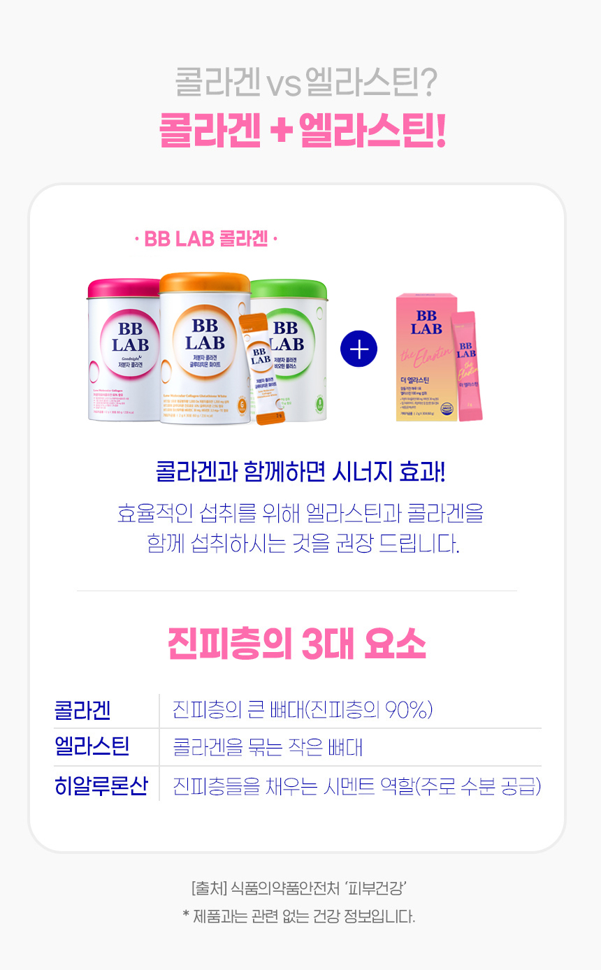 콜라겐은 흔한 콜라겐인줄 알았는데 알고보니 과학적! 진피의 3가지 성분, 엘라스틴, 콜라겐, 히알루론산의 고품격 성분을 한 패키지에 담은 이너뷰티세럼이라고 해야 할까요♡
