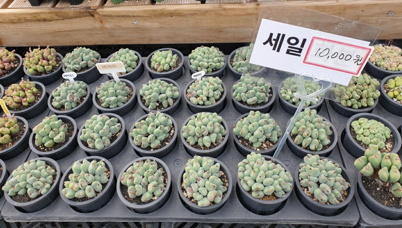 가게 앞에 작은 다육식물이 있지만 다육식물 판매는 그때 처음 봤어요.