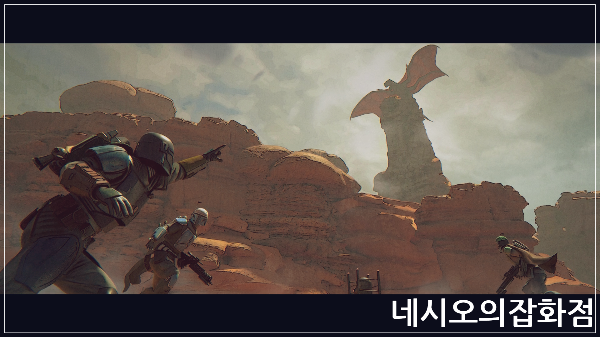 익룡의 은신처로 가는 만달로리안 특공대원들.