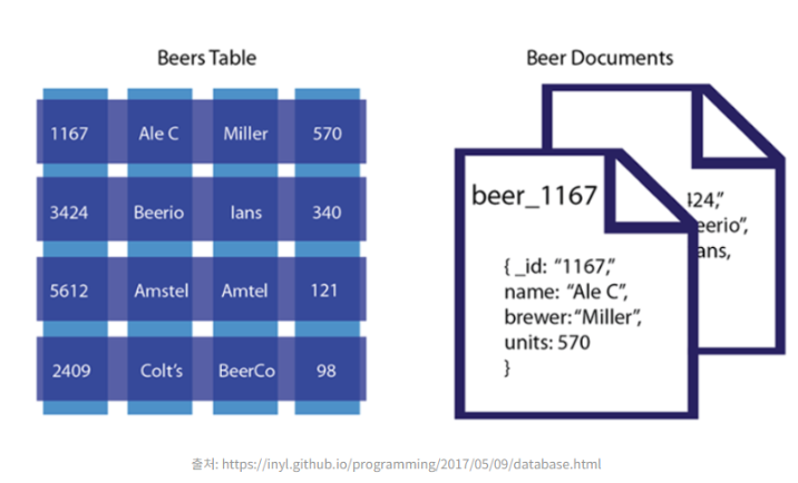 • 관계형 데이터베이스(Oracle, MySQL 등) 성능 향상을 위해 일부 기능 포기(처리 속도) 데이터베이스입니다.